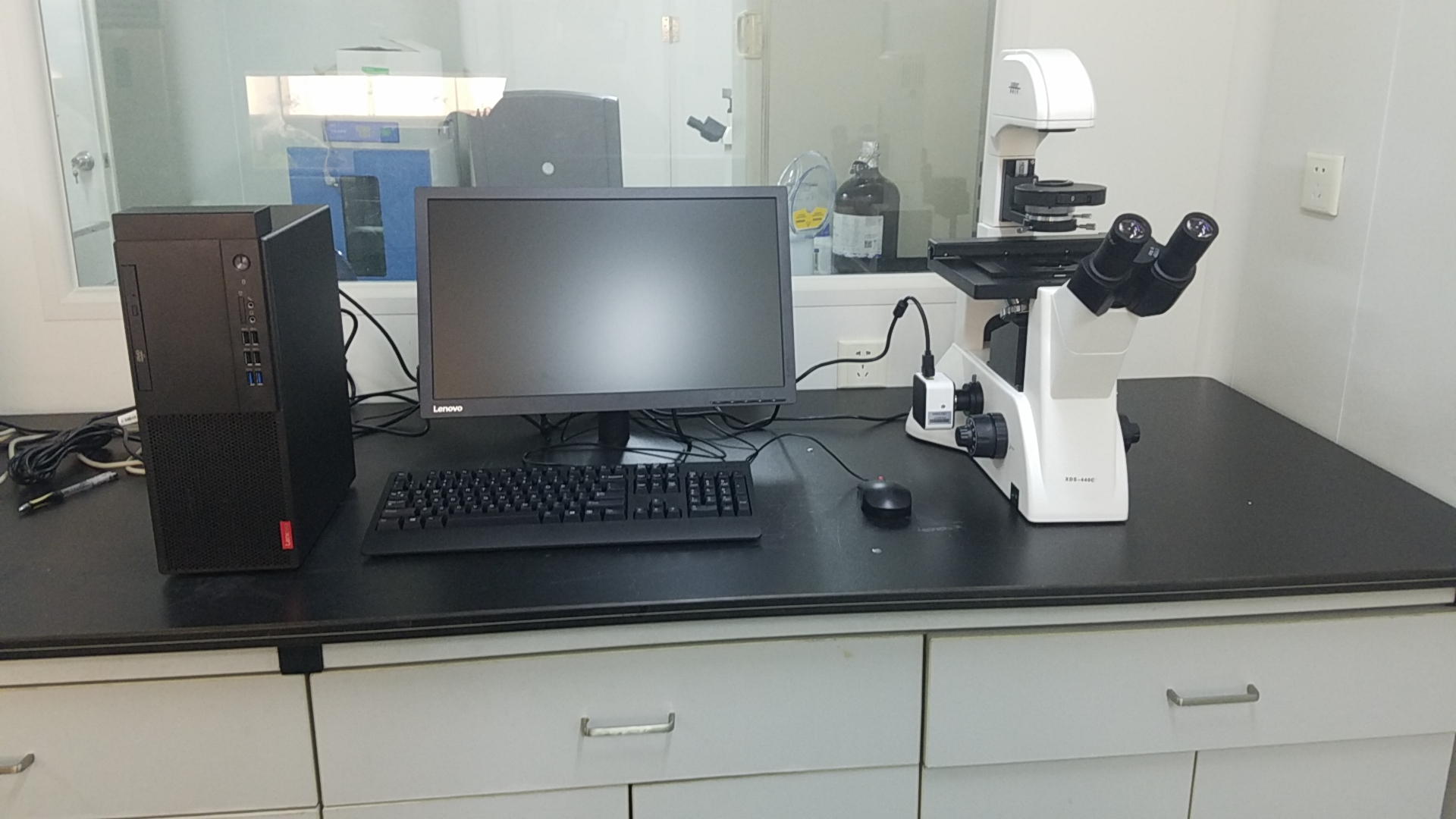 中南民族大學購置上海蔡康光學倒置生物顯微鏡 XDS-440C調試現場。