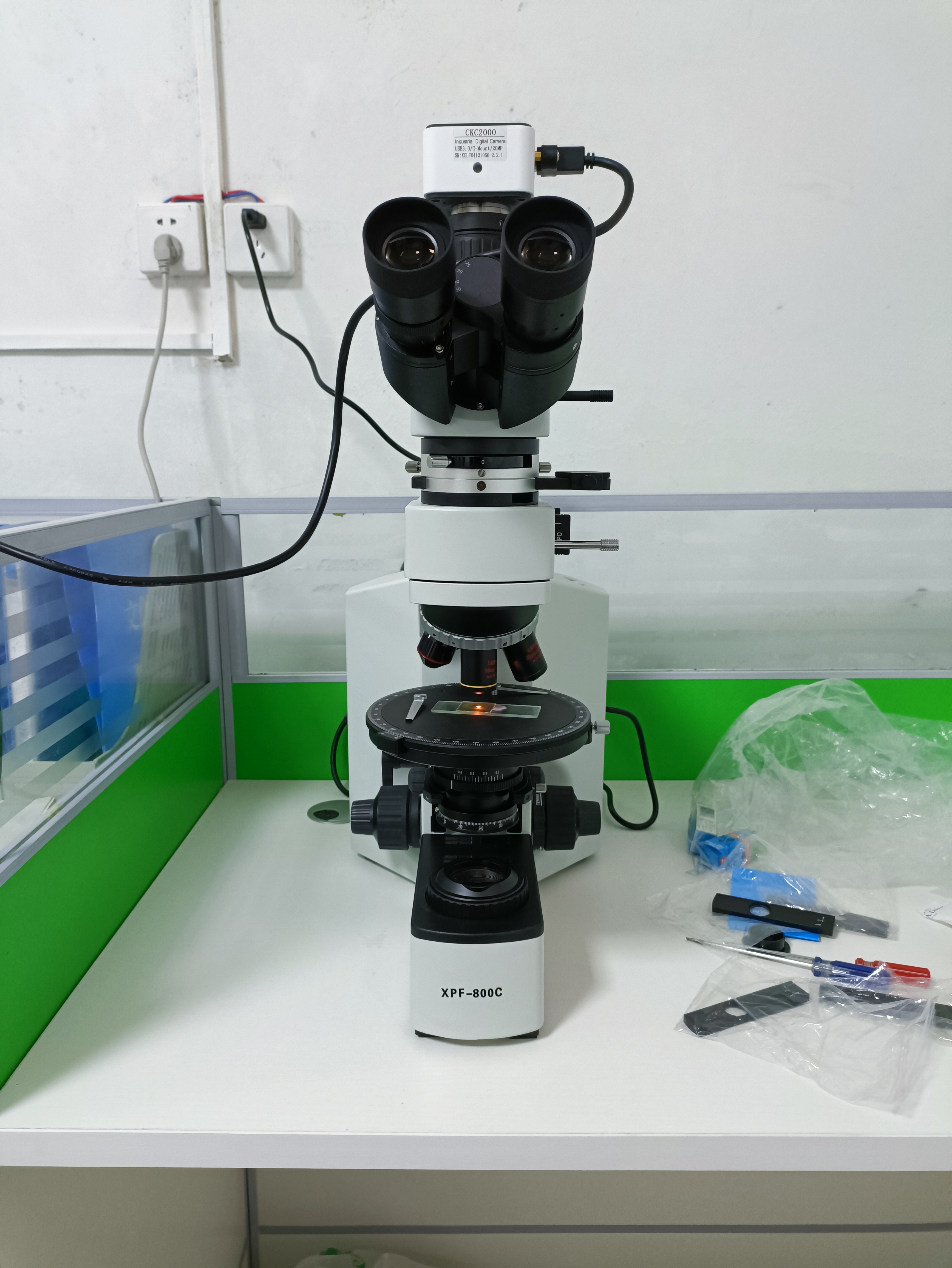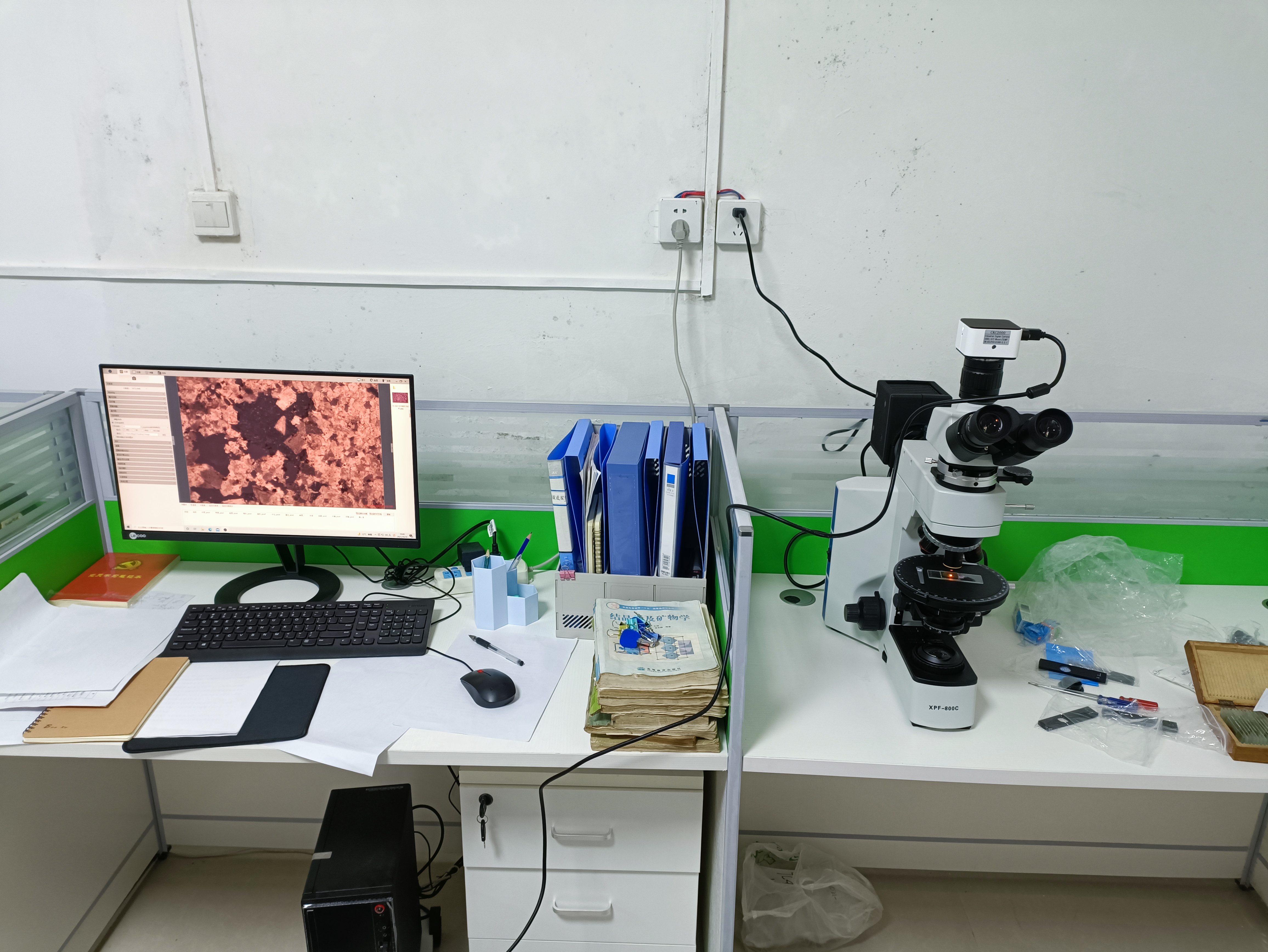 中化地質(zhì)礦山總局河南地質(zhì)局透反射偏光顯微鏡XPF-800C調(diào)試現(xiàn)場(chǎng)。